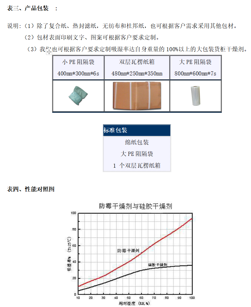 我們公司多生產(chǎn)的防霉干燥劑產(chǎn)品質(zhì)量環(huán)保干燥劑通過(guò)SIMT國(guó)家測(cè)試中心及SGS的認(rèn)證,產(chǎn)品質(zhì)量達(dá)到美國(guó)標(biāo)準(zhǔn)MIL-D-3464E及德國(guó)標(biāo)準(zhǔn)DIN-55473.相關(guān)技術(shù)表如下: