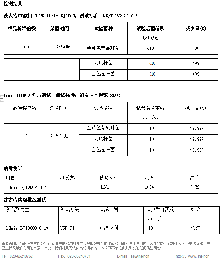 iHeir-BJ1000 是穩(wěn)定的復(fù)合銀水溶液,經(jīng)過特殊的生產(chǎn)加工工藝,使銀離子不易變色,對水的硬度要求低,可以用一般水稀釋,和卡波和陰離子體系相容,對環(huán)境和人體安全,無刺激, 無污染, 無泡沫, 對粘膜的刺激性極低,可以有效地取代 PCMX,三氯生等有限制的抗菌劑,可用于洗衣液的抗菌,除異味,除甲醛,銀離子消毒劑和抗菌紡織品的生產(chǎn)。