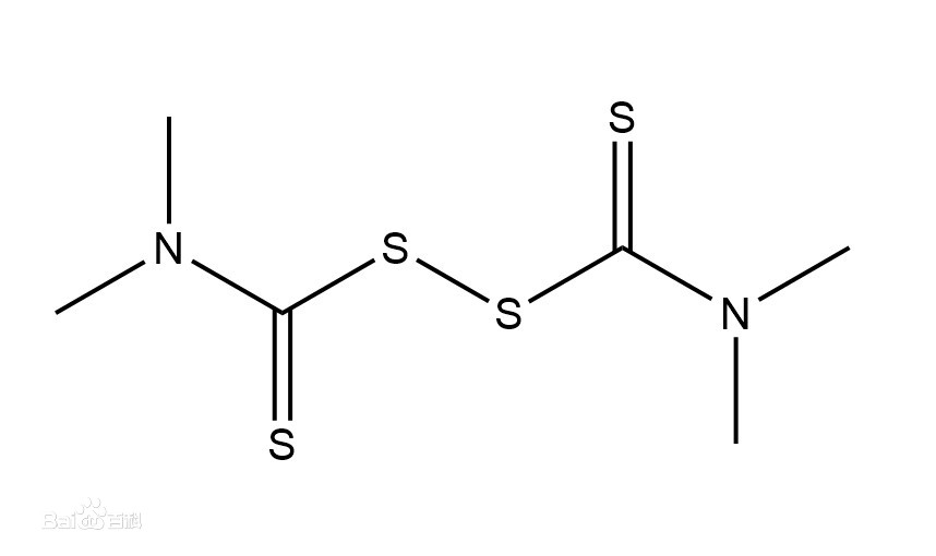 福美雙抗細菌效力較強,抗霉菌效力一般。一般用于橡膠工業(yè)的促進劑,工業(yè)上主要用于漆布防霉,用量是漿料量的1~2%。